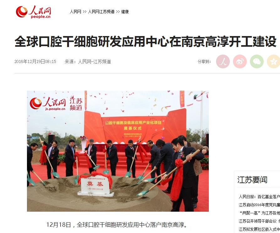 昨日,全球口腔干細胞研發(fā)應(yīng)用中心在南京高淳開工建設(shè)。奠基儀式后,各大門戶網(wǎng)站和江蘇省各主要媒體部門紛紛在主要版塊發(fā)文,關(guān)…