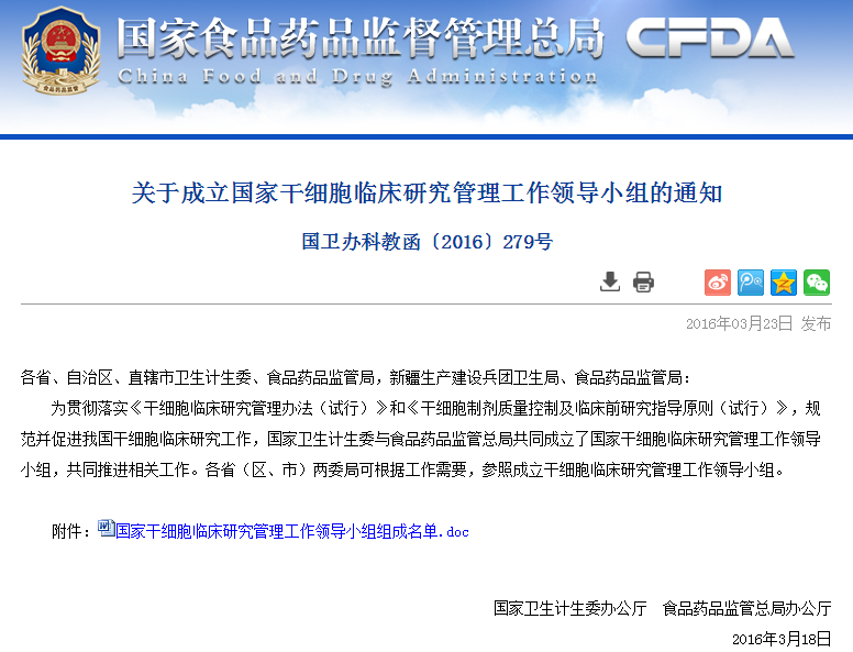 按照《干細(xì)胞臨床研究管理辦法(試行)》要求,國家干細(xì)胞臨床研究專家委員會(huì)對(duì)各地報(bào)送的干細(xì)胞臨床研究機(jī)構(gòu)備案材料進(jìn)行了審核,根據(jù)專家委員會(huì)意見,形成了干細(xì)胞臨床研究機(jī)構(gòu)首批通過備案的建議名單(見附件)。 從即日起至2016年6月8日對(duì)擬備案機(jī)構(gòu)進(jìn)…